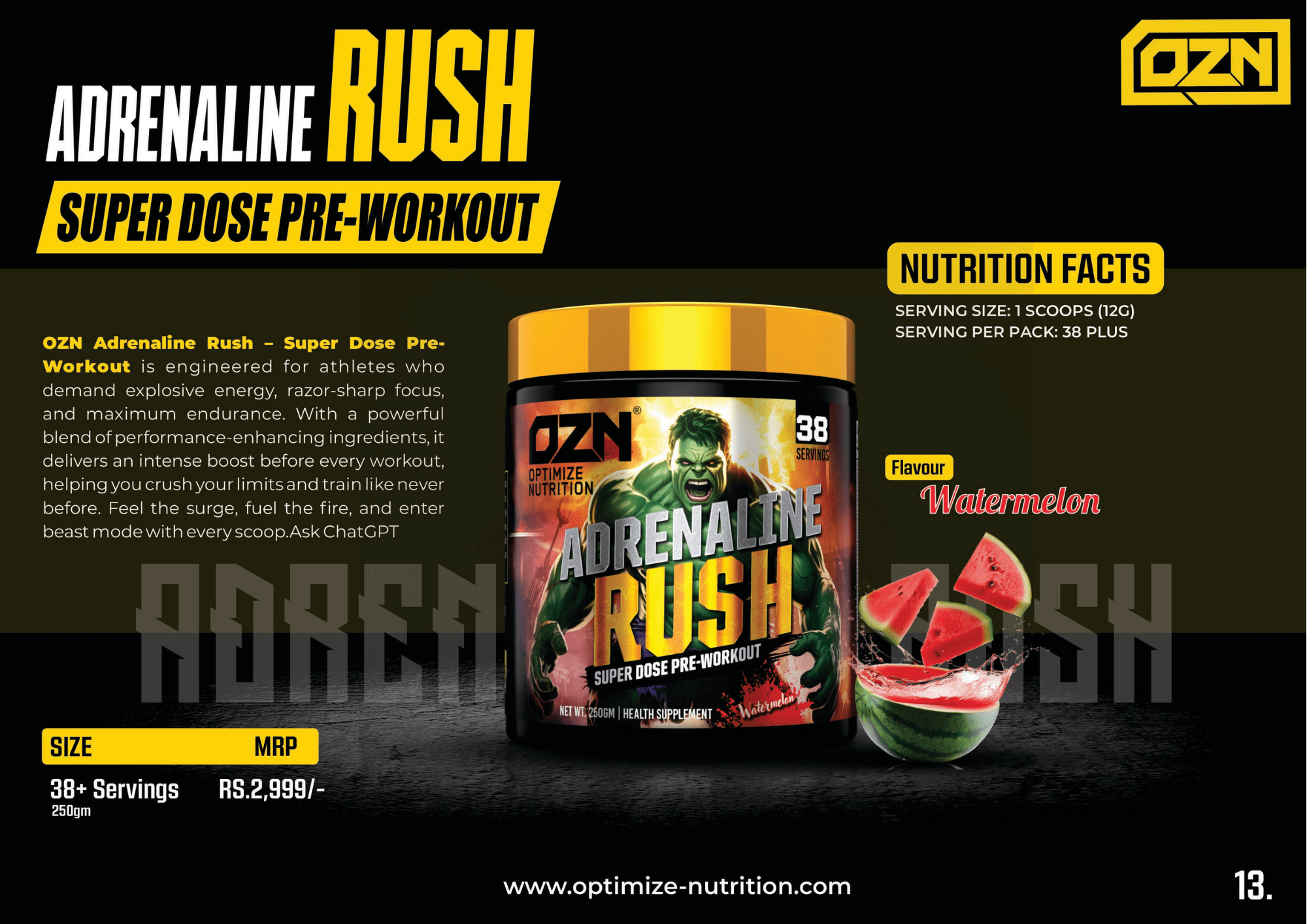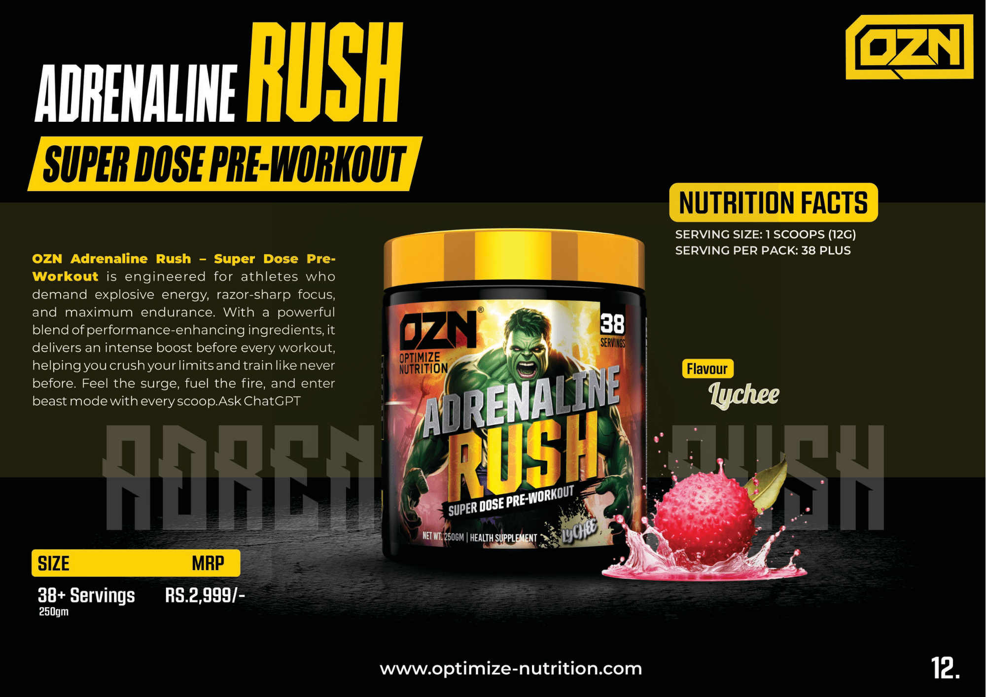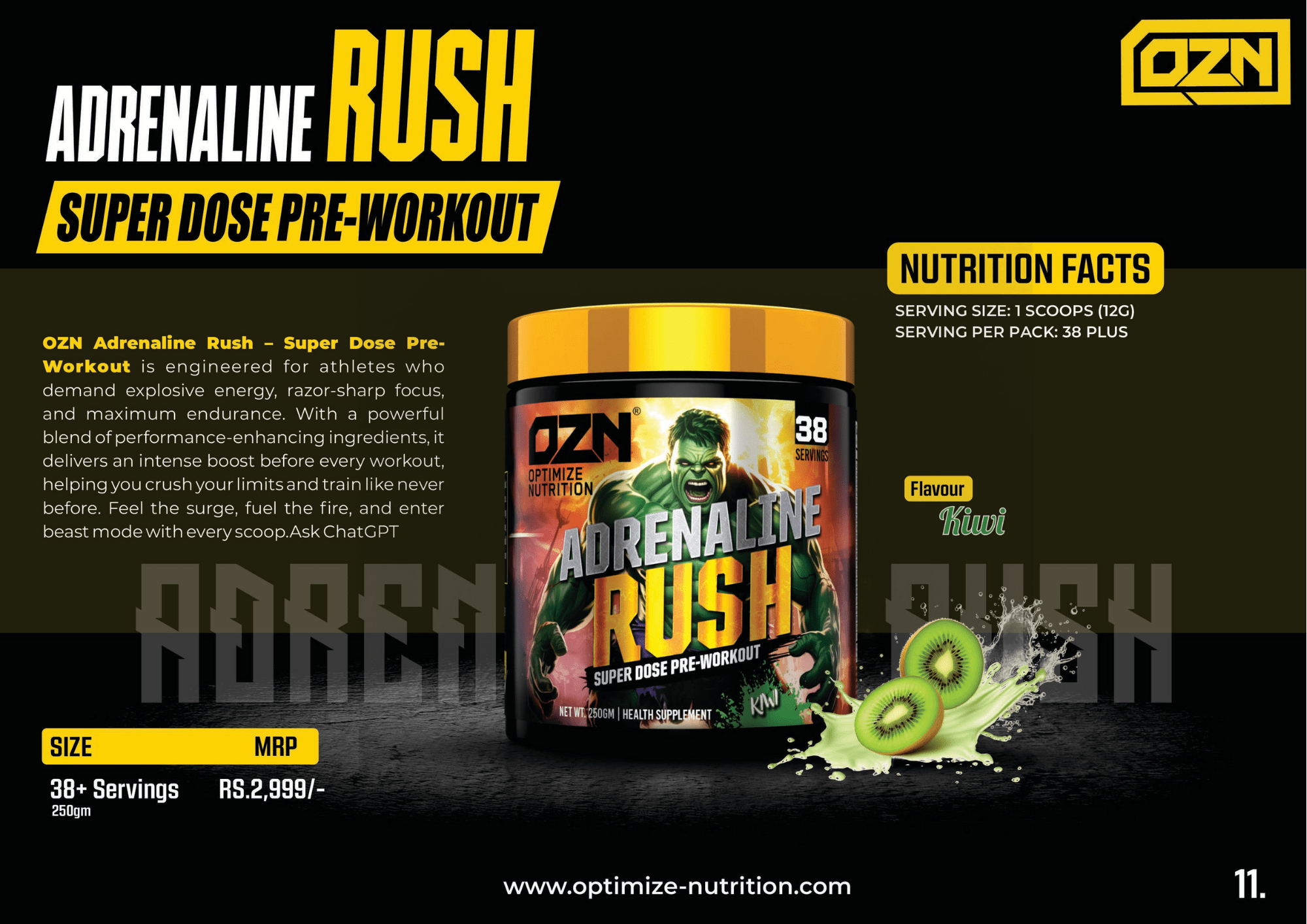 OZN Adrenaline Rush – Super Dose Pre-Workout is engineered for athletes who